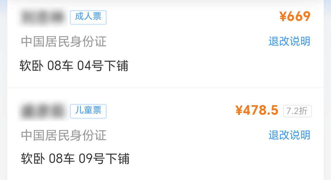 儿童优惠票软卧票价=软座票价×50%+卧铺票价(软)×100%